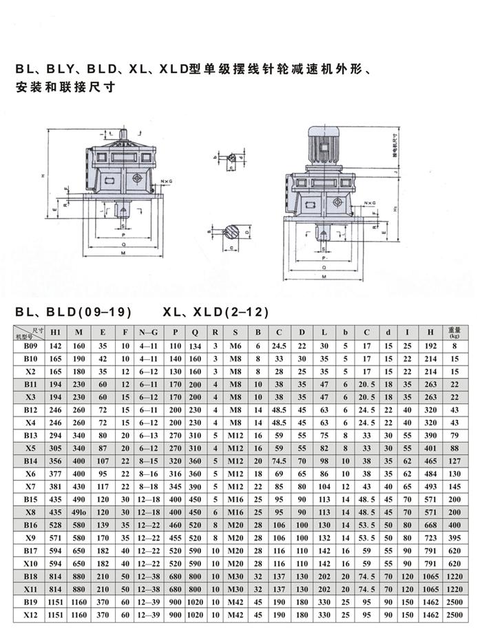 BL、BLY、BLD、XL、XLD型單級擺線針輪