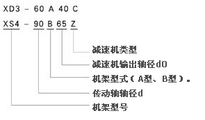 注:1、減速機類別代號Z為x系列,B系列的擺線針輪減速C為LC型,DC型齒輪減速機。