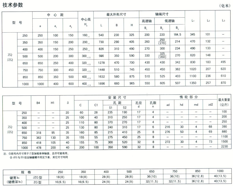 ZQ(JZQ),ZQH減速機型號有:250,350,400,500,650,750,850,1000,