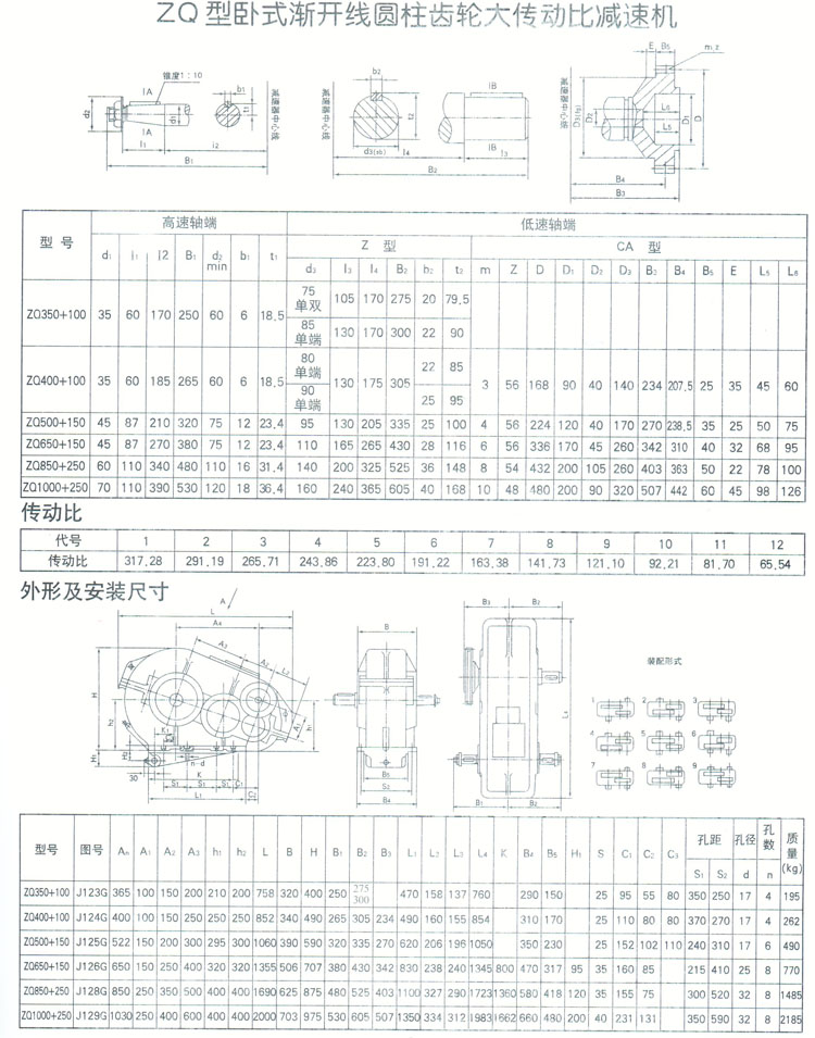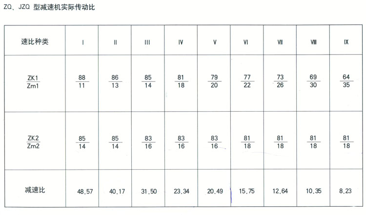 ZQ(JZQ),ZQH傳動比有:48.57,40.17,31.5,23.34,20.49,15.75,12.64,10.35, 8.23,