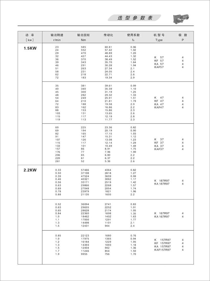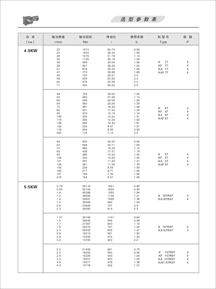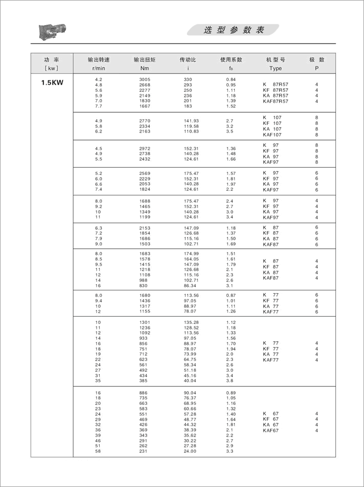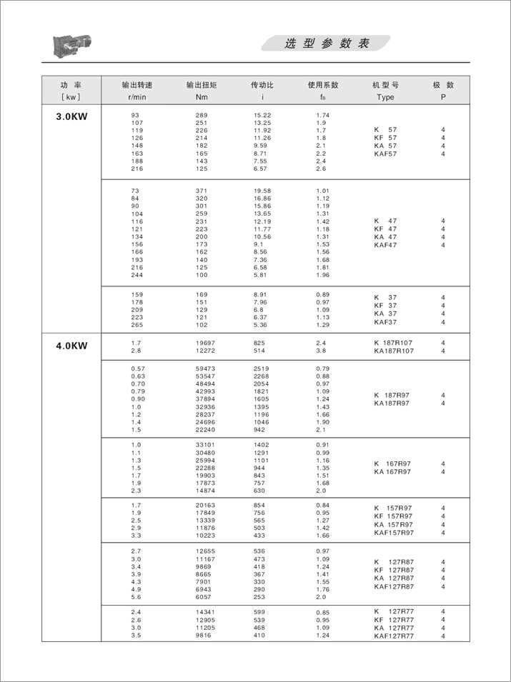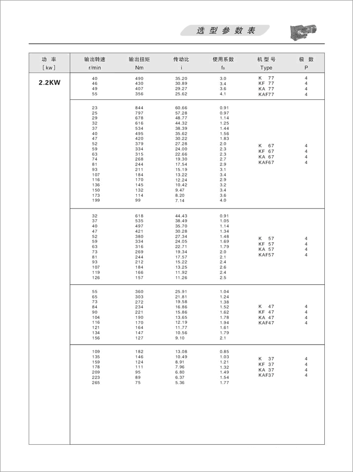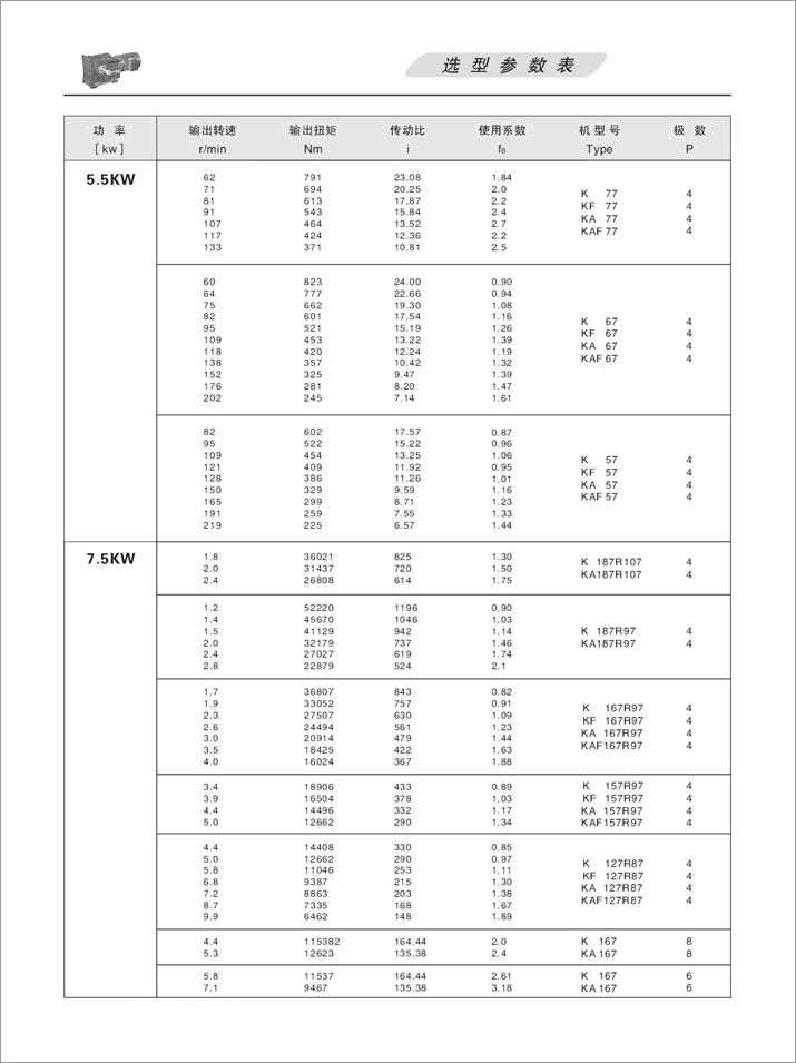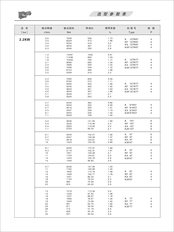 K型螺旋錐齒輪減速器具有體積小、傳遞轉矩大,效率高,工作平穩,壽命長,所配功率范圍廣,輸出轉速多,安裝形式多等特點,有7種型式,9種規格。