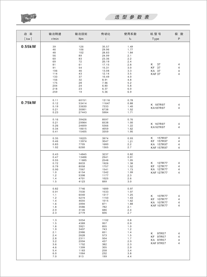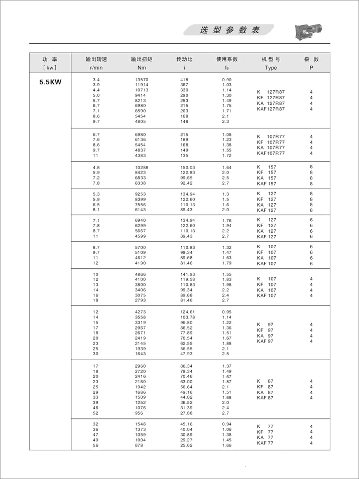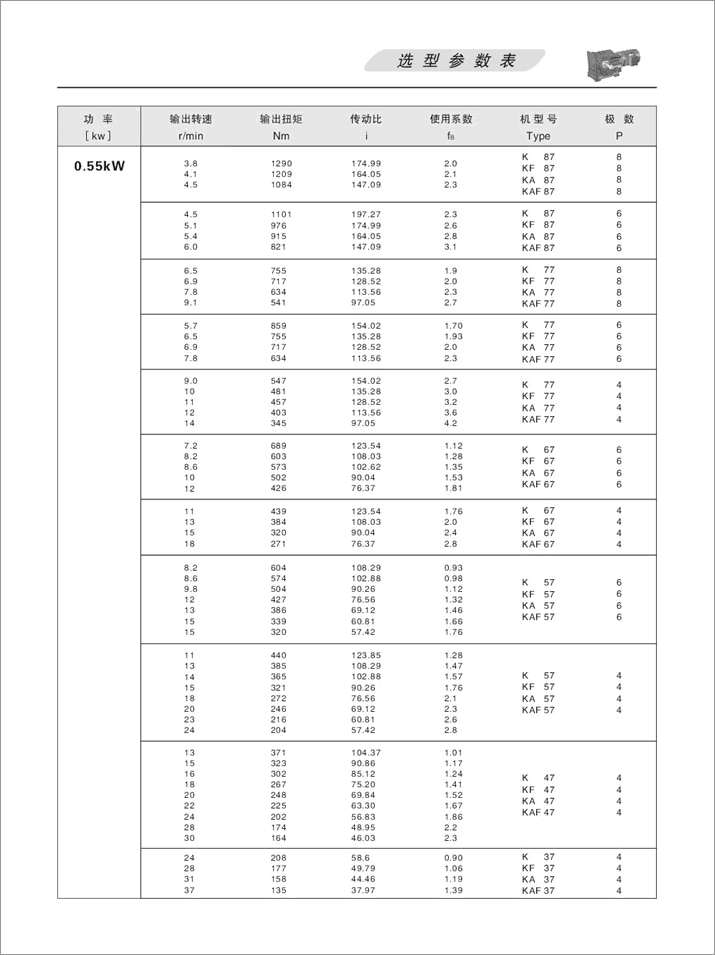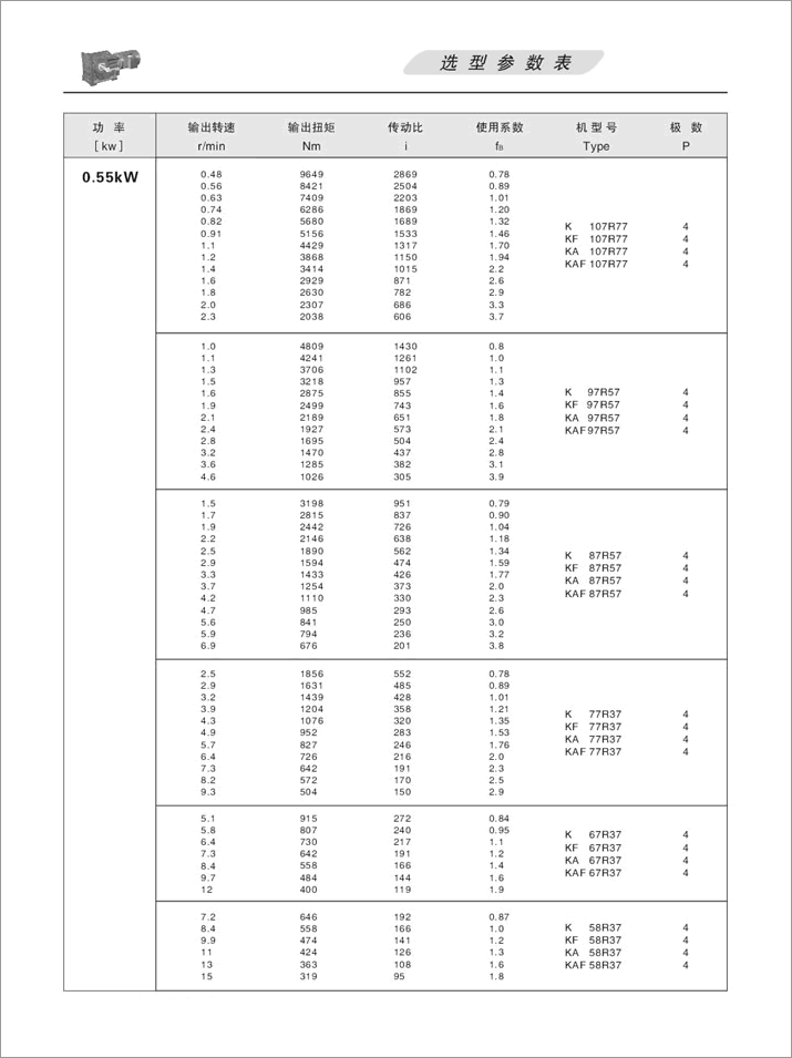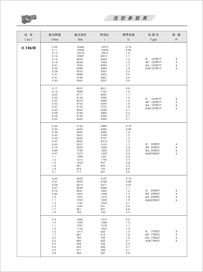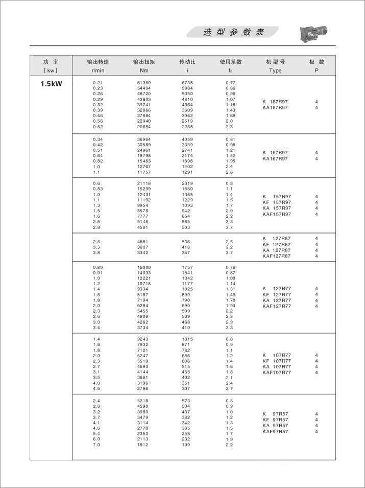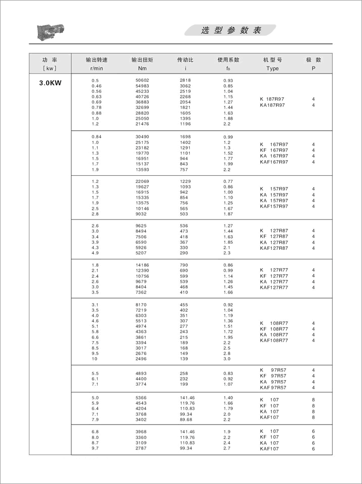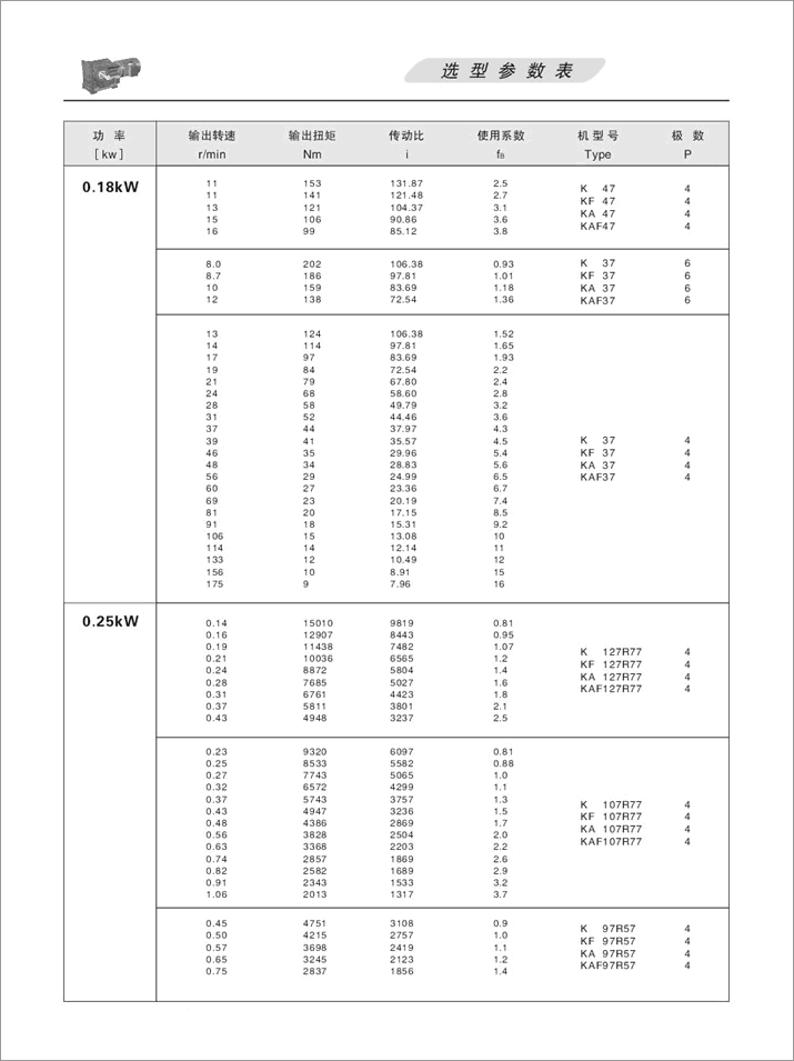 K型螺旋錐齒輪減速器具有體積小、傳遞轉矩大,效率高,工作平穩,壽命長,所配功率范圍廣,輸出轉速多,安裝形式多等特點,有7種型式,9種規格。