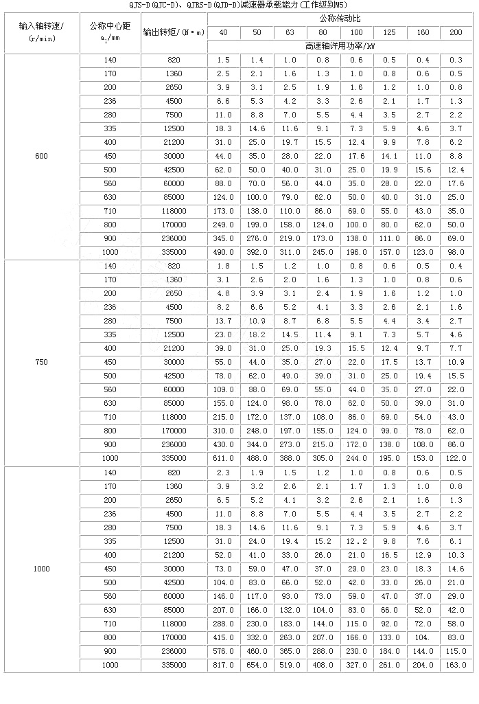 起重機(jī)底座式減速器是在三支點(diǎn)減速器的基礎(chǔ)上派生出來(lái)的。因此QJ-D型減速器的工作條件、主要技術(shù)參數(shù)、承載能力和輸出軸端最大允許徑向載荷與三支點(diǎn)減速器相同,其它有所不同。